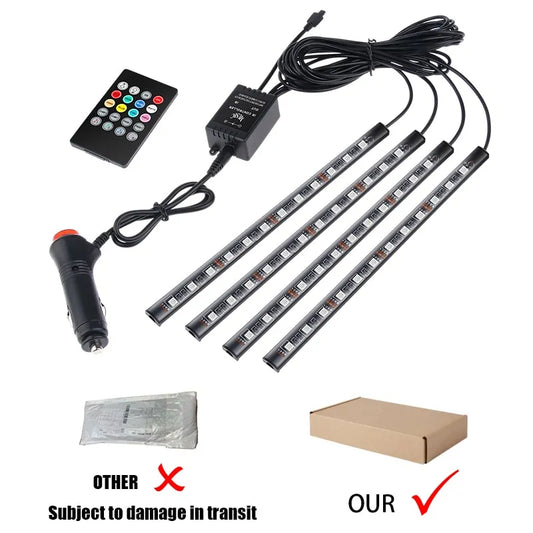 Lámpara ambiental con luz LED para pies de coche con control remoto inalámbrico
