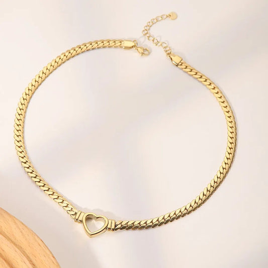 Collar de mujer con corazón de eslabones cubanos bañado en oro