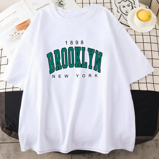 Brooklyn New York Letter Printed Cotton T-Shirts